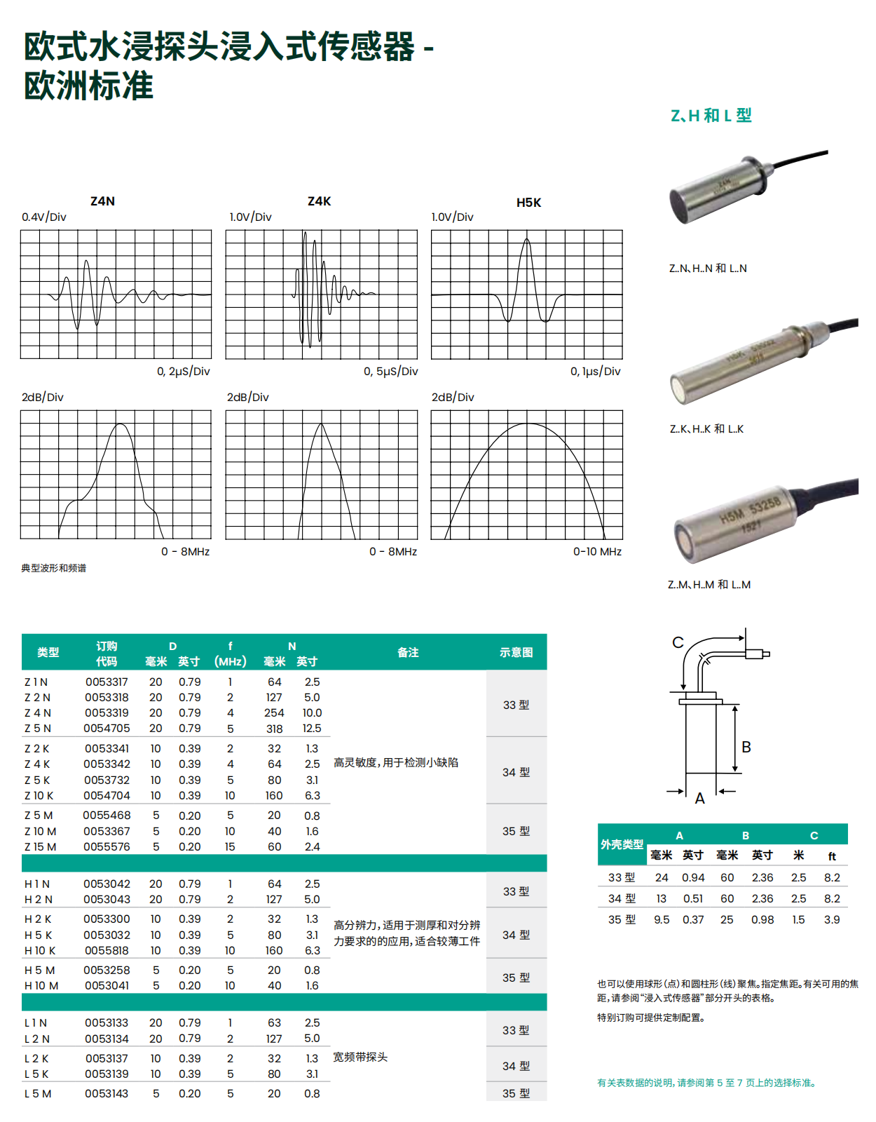 可以聚焦于一个点(球形)或一条直线(圆柱形),以提高分辨率、灵敏度和信噪比欧式型号具有带 LEMO-1连接器的固定线缆。