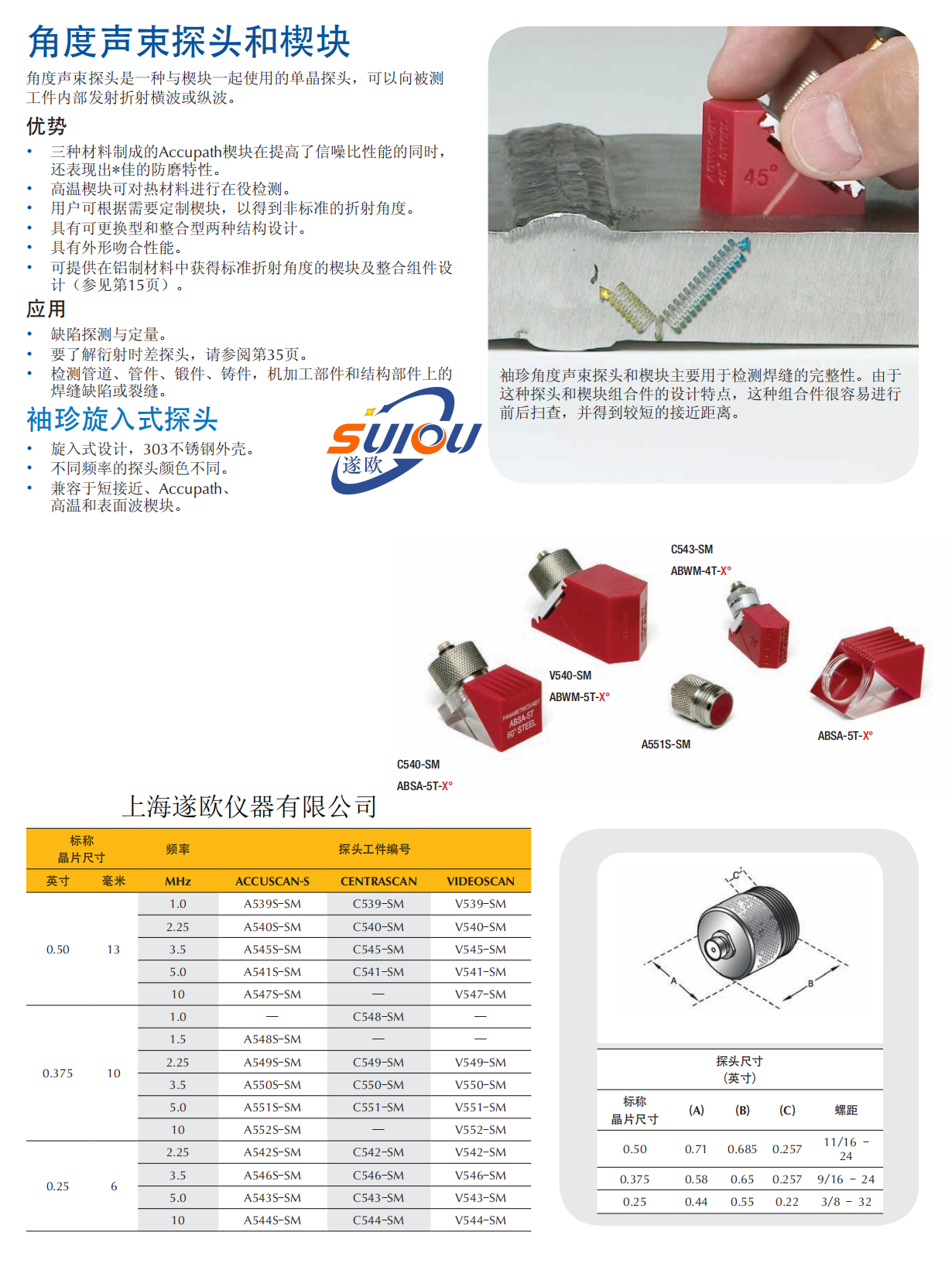 • 兼容于短接近、Accupath、高温和表面波楔块。