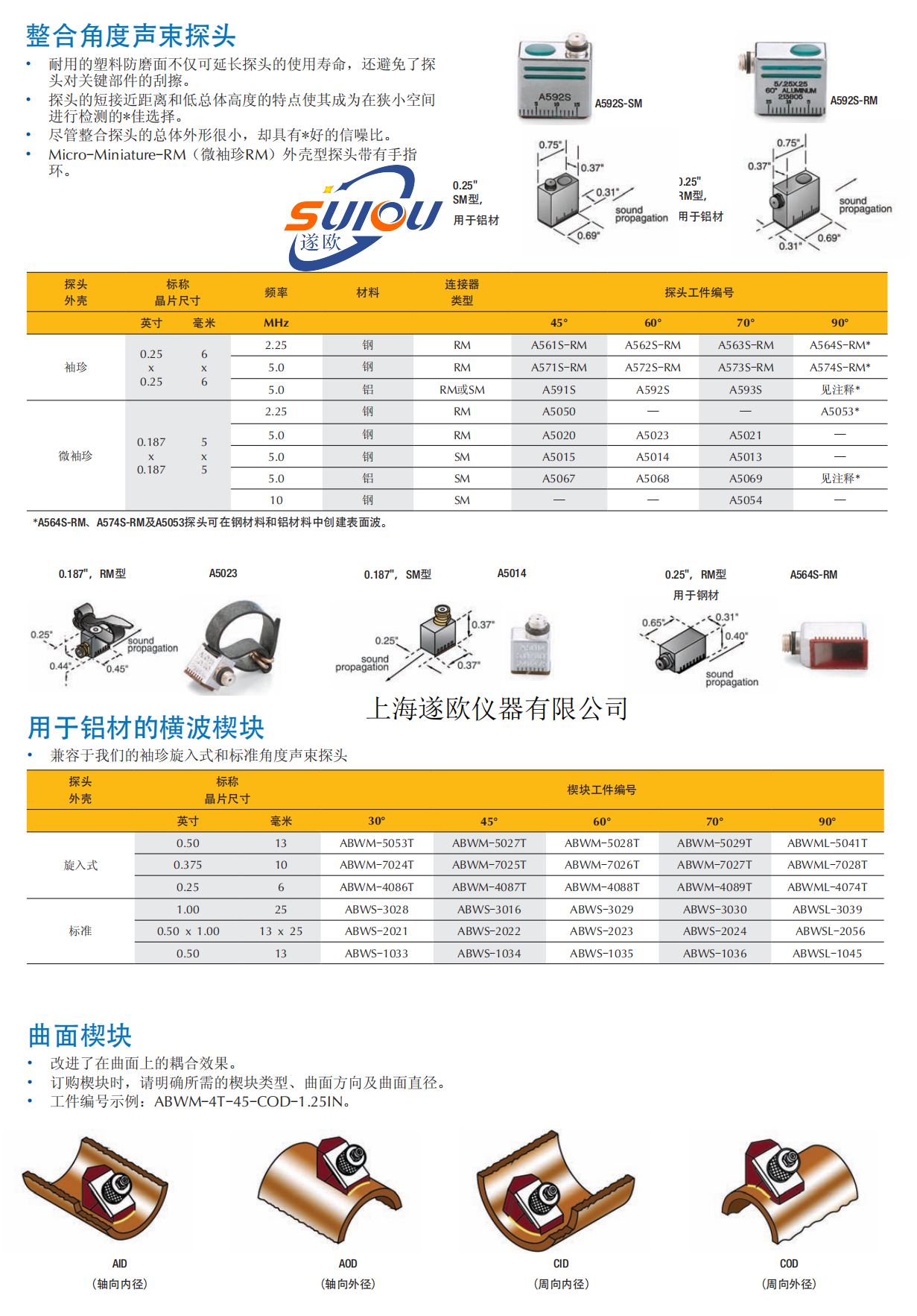 代理商:上海遂欧仪器有限公司整合角度声束探头